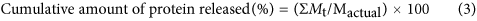 where Mt is the amount of protein released at time t, and Mactual is the actual amount of protein- loaded onto the NPs. The protein solution obtained after the in vitro release study was subjected to SDS-PAGE in order to determine the effect of various experimental conditions of formulation and evaluation of the integrity of the proteins (HSA and rhMPB).