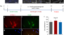 Cell proliferation was examined by cell counting. Cells were cultured in DM for 0, 7 and 14 days and in DMEM with 10% FBS, 100 U/ml penicillin and 100 mg/ml streptomycin as the control. The cells were trypsinized and counted using a hemocytometer under light microscope. Cell counts were performed in triplicate and repeated in three cultures (n = 5).