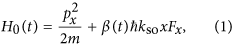 where px is the momentum of an atom, Fx is the x-component of its spin F, and β(t) = ωsin(ωt) is the temporal profile for the coupling strength between the time-dependent GMF and atomic magnetic dipole moment measured in units of modulation amplitude ħkso. The Schrödinger equation for H0(t) of Eq. (1) can be more easily handled if we introduce a unitary transformation
