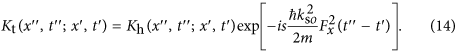 where ζ and s denote modifications to the strength of SOC and the quadratic Zeeman shift, respectively, when the trap potential Vtrap is present. The corresponding propagator in this case is found to be (see Methods)