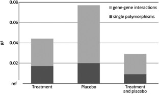 It was investigated whether pharmacogenetic factors, both as single polymorphism and as gene–gene interactions, have an added value over non-genetic factors in predicting statin response. Five common polymorphisms were selected in apolipoprotein E, angiotensin-converting enzyme, hepatic lipase and toll-like receptor 4. Linear regression models were built and compared on R2 to estimate the added value of single polymorphisms and gene-gene interactions. The selected polymorphisms and the gene–gene interactions had a small added value in predicting change in low-density lipoprotein cholesterol levels (LDL-c) as response to statins over the non-genetic predictors (P=0.104), and also in predicting LDL-c in non-treated patients (P=0.016). Moreover, four gene–gene interactions with statin therapy were identified. The added value of genetic factors over non-genetic variables is for the greater part produced by gene–gene interactions. This underlines the importance to examine gene–gene interactions in future (pharmaco)genetic research.