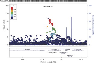 Pruim RJ, Welch RP, Sanna S, Teslovich TM, Chines PS, Gliedt TP et al. LocusZoom: regional visualization of genome-wide association scan results. Bioinformatics 2010; 26: 2336–2337.