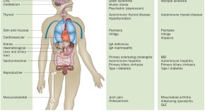 Many autoimmune diseases are known to occur alongside coeliac disease and, in some instances, patients see improvements in both if coeliac disease is diagnosed and treated. Shared genetic traits have been identified between coeliac disease and many of these forms of autoimmunity. In this Review, an overview is presented of the genetic and immunological features of coeliac disease, its overlap with other autoimmune diseases and implications for screening strategies.