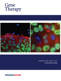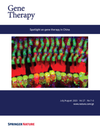 Cover legend: Viral mediated CRISPR-Cas9 activation in adult murine inner ear. Associated-adenovirus (AAV) infects murine cochlea efficiently and safely, but it is unable to package SpCas9 and guide RNA into the same AAV. By inner ear microinjection, AAV activates Cas9 expression in diverse cochleae cell types of neonatal and adult Cas9 knock-in mice, with high efficiency and non-ototoxicity. See paper by Kang et al. in this issue of Gene Therapy.