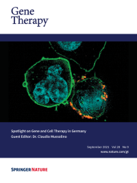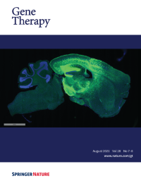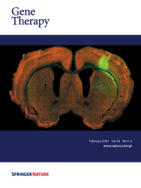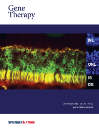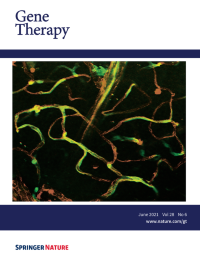 Cover Credit:Small and cell-type restricted promoters are important tools for basic and preclinical research, and clinical delivery of gene therapies. Human-DNA MiniPromoter Ple32 (CLDN5, 1,670 bp) was developed for specifi c expression in the endothelial cells of the bloodretina and blood-brain barrier. The image shows Ple32 driving emerald GFP expression (green), co-labeled with anti-CD31 an endothelial cell marker (red), confi rming blood vessel expression in the target endothelial cells that create the barrier. See paper by Korecki et al. in this issue of Gene Therapy.