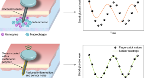 Coating continuous glucose-monitoring sensors with zwitterionic polymer reduces early inflammatory responses and signal noise after sensor implantation in live animals, and improves the performance of the sensors without the need for additional recalibration.