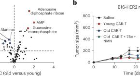 Successful responses to chimeric antigen receptor (CAR) T cell therapy are limited in older patients. Compared with those from younger donors, CAR T cells generated from older donors had reduced stem-like properties, owing to mitochondrial defects associated with a decrease in nicotinamide adenine dinucleotide (NAD+) levels. Restoration of NAD+ levels reinstated mitochondrial fitness and rejuvenated the functionality of aged CAR T cells.