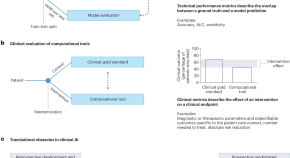 • Technical metrics used to evaluate medical artificial intelligence tools often fail to predict their clinical impact. We characterize this discordance and propose a framework of study designs to guide the translational process for clinical artificial intelligence tools, acknowledging their diversity and specific validation requirements.