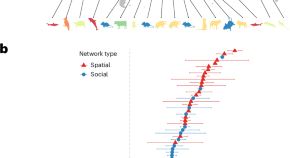 Comparative analyses of the behaviour of individual animals across multiple populations are rare. We analysed the relationship between local population density and individual behaviour across 36 wild animal populations, which revealed that both spatial and social networks increase in connectivity with density, nonlinearly, and that there are strong differences between these networks.