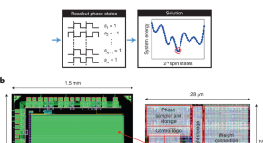 A silicon chip fabricated in a standard semiconductor foundry demonstrates that coupled ring oscillators can solve optimization problems targeted by quantum computers, and are quicker, cheaper and more energy-efficient than digital solvers. The 1,968 oscillator integrated circuit consumes 0.042 W and finds a solution within 50 oscillation cycles.