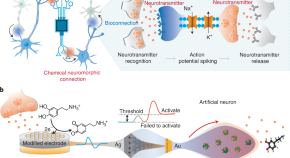 An artificial neuron is designed to communicate chemically with biological neurons. The artificial neuron can receive and release the neurotransmitter dopamine, enabling adaptive interaction with live neurons and the sciatic nerve in a mouse leg.
