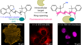 Polymethine dyes are bright and red-shifted fluorophores that lack an intrinsic turn-on mechanism, which leads to non-specific staining when applied to biological samples. Now the fluorescence of polymethine dyes was masked through an intracellular cyclization strategy that gets reversed upon binding an intended macromolecular target, providing specificity for live-cell imaging.