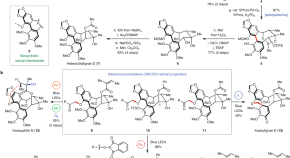 Many biosynthetic cyclizations are catalysed by iron oxygenases and appear to involve long-lived radical species. Now, mimicking these biosynthetic transformations, the total synthesis of highly oxidized lignan natural products has been reported using redox-neutral photocatalysis to enable late-stage radical cyclizations that install challenging 5- and 11-membered rings.