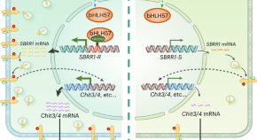 Rice sheath blight is a major fungal disease caused by the necrotrophic pathogen Rhizoctonia solani. We identified a natural SBRR1-R allele that is activated by the bHLH57 transcription factor, leading to increased expression of chitinase antifungal protein genes that confer resistance to sheath blight.