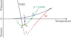 Liquid water expands when heated — or cooled — away from a particular temperature that increases when the fluid is stretched. Experiments on water under extreme tension now enable tracking of this distinctive behaviour well into the negative-pressure domain.