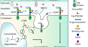 We found that the fungal pathogen Fusarium graminearum secretes an apoplastic effector that disrupts N-glycosylation of the maize immune receptor ZmLecRK1, leading to its degradation by selective autophagy. This mechanism enables the pathogen to evade host defences and successfully colonize maize.