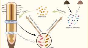 The OsLHT1a allele of the amino acid transporter gene OsLHT1 in the Oryza sativa spp. japonica rice variety, which differs from the OsLHT1b allele in the Oryza sativa spp. indica variety, enhances organic nitrogen use efficiency in high-organic-matter soils through recruitment of a specific rhizosphere microbiota that boosts amino acid production and uptake.