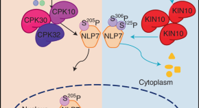Cooperation between nitrogen assimilation and photosynthesis is central for plant growth and development in adaption to changing environmental conditions. This work reveals that the plant energy sensor SnRK1 represses nitrate signalling by phosphorylating NODULE INCEPTION PROTEIN-LIKE PROTEIN (NLP7) to promote its degradation in response to carbon deficiency or nitrate depletion.