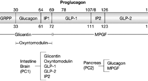 Proglucagon-derived peptides from the pancreas and gut regulate various aspects of energy homeostasis, with many potential therapeutic applications—glucagon is used to treat hypoglycemia, and researchers are testing glucagon antagonists and glucagon-derived peptide 1 receptor (GLP-1R) agonists to treat type 2 diabetes, and a GLP-2 analogue to treat short-bowel syndrome.