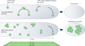 Analysis of cell–cell communication between embryonic stem cells using a combination of experiments and modeling shows that cells can communicate important messages over much larger distances than previously known, exhibiting quorum-sensing-like behavior.