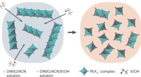 The fabrication of perovskite photovoltaics often relies on hazardous solvents that limit their implementation in manufacturing. Now, researchers develop a green solvent system for fabrication of large-area perovskite solar modules using industrially viable and scalable deposition methods, which achieve high power conversion efficiencies.