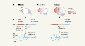 This study searched for putative regulatory mutations specific to the human lineage by looking for sequences that are highly conserved between chimpanzees and other species, but are not present in the human genome. The 500-odd human-specific deletions tend to lie in non-coding DNA stretches and near genes involved in steroid hormone signalling and neural function. This is illustrated with two examples, one of which affects penile anatomy whereas the other affects brain size.