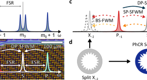 • An integrated device that combines optical parametric oscillation and electro-optic modulation in lithium niobate creates a flat-top frequency-comb-like output with low power requirements.