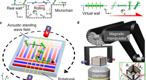 The application of rolling motion to microswarm navigation and cargo delivery has been constrained by the need for a physical boundary to roll along to date. Here, Zhang et al. solve this problem by introducing a reconfigurable virtual wall implemented by a combination of magnetic and acoustic fields.