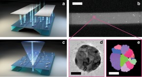 • Grain boundaries are thought to significantly mediate phase transformations in nanoparticles. Here, the authors combine multichannel plasmonic nanospectroscopy and transmission Kikuchi diffraction to study the role of grain boundaries in hydriding reactions of Pd nanoparticles on a single-particle level.