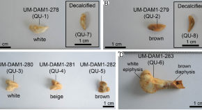 Zheng et al. report on the presence of nuclear preservation in the femoral cartilage of a specimen of Caudipteryx, a theropod dinosaur. They identify the presence of chromatin threads for only the second time in any vertebrate fossil.