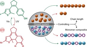 The properties of polymers depend on monomer composition and chain length, but regulating these structural features during polymer synthesis is a challenge. Now Hecht and co-workers report a photoswitchable catalyst system that can repeatedly be switched between ON and OFF states, allowing remote control of the polymerization process. Furthermore, copolymerization with control over monomer incorporation is demonstrated.