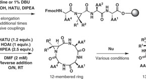 Controlling macrocycle conformation represents a powerful tool for the construction of new bioactive molecules. Now, peptide-based macrocycles bearing a 1,3,4-oxadiazole moiety grafted into their backbone have been synthesized via a new cyclization approach. The resulting cyclic products exhibit conformationally rigid turn structures (stabilized through intramolecular hydrogen bonding) that can display passive membrane permeability.