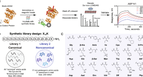 Machine learning has now been shown to enable the de novo design of abiotic nuclear-targeting miniproteins. To achieve this, high-throughput experimentation was combined with a directed evolution-inspired deep-learning approach in which the molecular structures of natural and unnatural residues are represented as topological fingerprints. The designed miniproteins, called Mach proteins, are non-toxic and can efficiently deliver antisense cargo in mice.