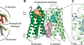 • Otopetrins form proton channels in animals ranging from nematodes to humans. Here, authors identify small molecule inhibitors and characterize their binding in the intrasubunit interface region, thus highlighting the area for pharmacological targeting for channel modulation.