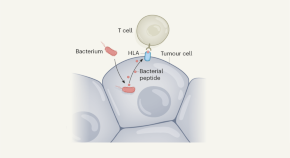 The mutant IDH1 protein, which is expressed in a large fraction of human gliomas, is shown to be immunogenic; mutant-specific immune responses can be detected in patients with IDH1 mutated gliomas and generated in mice and are shown to treat established IDH1 mutant tumours in a syngeneic MHC humanized mouse model in a CD4 T-cell-dependent manner.
