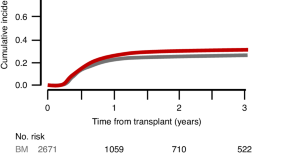 We report a paired-matched analysis of HLA-mismatched unrelated donor transplantation (MMUD, n = 73) versus HLA-haploidentical transplantation (n = 146) in AML patients with active disease at transplantation. Two-year leukemia-free survival and overall survival was 42% and 46% in MMUD recipients, respectively, versus 26% (P = 0.1) and 28% (P = 0.061) in Haplo-patients.