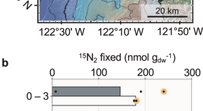 Substantial nitrogen fixation at sub-nanomolar molybdenum concentrations without alternative nitrogenases, with important implications for early Earth primary productivity, according to results from a ferruginous, low-sulfate, low-Mo, cyanobacteria-dominated lake.