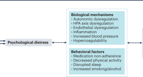 The COVID-19 pandemic has unleashed a tidal wave of psychological distress. Here we discuss the biobehavioral mechanisms through which psychological distress amplifies the adverse effects of SARS-CoV-2 infection on cardiovascular outcomes. We also examine how the stress of caring for patients with COVID-19 increases cardiovascular risk in healthcare workers.