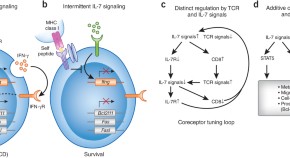 Maintenance of the peripheral naive CD8+ T cell pool depends on T cell antigen receptor (TCR) signals and interleukin 7 (IL-7). TCR signaling limits the duration of IL-7 signals to avoid an interferon-γ-mediated mechanism of apoptotic death of naive CD8+ T cells.