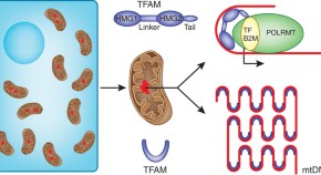 The mammalian mitochondrial transcription factor A (TFAM) is encoded in the nucleus and imported into mitochondria, where it functions as an activator of mtDNA transcription and packages mtDNA into DNA-protein aggregates called mitochondrial nucleoids. Two studies in this issue reveal that TFAM shapes mtDNA into a sharp U-turn, providing a molecular mechanism for its dual roles in the expression and maintenance of mtDNA.