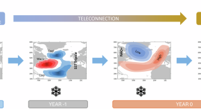 North Atlantic sea surface temperature influences hydrology in the United Kingdom up to 1.5 years in advance via a teleconnection with the position of the North Atlantic Current, which can help with drought forecasting according to a statistical analysis of precipitation and streamflow indices.