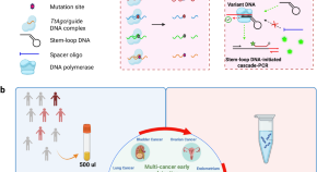 • Mutation detection in cfDNA is crucial for cancer diagnosis and monitoring. Here, the authors develop an Enzymatic Cleavage-directed Single Nucleotide Variant Sequencing by integrating Argonaute-mediated cleavage and stem-loop DNA-initiated PCR amplification for cfDNA mutation detection.