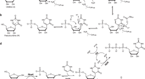 • Pseudouridine (Ψ), the C-nucleoside isomer of uridine, and its 1-N-methyl derivative, are incorporated in mRNA vaccines and essential for their efficiency, but difficult to synthetically access. Here, the authors report on selective and atom-economic 1N-5C rearrangement of β-d-ribosyl on uracil to obtain Ψ from unprotected U in quantitative yield