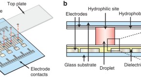 Traditional methods for forming hydrogel particles are limited by geometry and lack of addressability after synthesis. Here the authors use digital microfluidics to form individually addressable gels with customisable shapes and compositions.