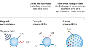 Oxide nanoparticles, particularly iron oxide, ceria and silica nanoparticles, hold significant promise for biomedical applications owing to their unique magnetic, catalytic and porous properties. This Review highlights design strategies for their diagnostic and therapeutic uses and future clinical challenges.