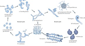 Fungi communicate with one another using chemical languages that consist of extracellular signals and sophisticated cellular responses. Glass and colleagues review the languages that are used by the largest phylum of fungi, the Ascomycota, during developmental processes such as germination, formation of mycelial networks through cell fusion, coordination of colony development, and both sexual and asexual reproduction.
