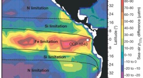 Core isotope measurements in the equatorial Pacific Ocean reveal that although atmospheric dust deposition during the last ice age was higher than today’s, the productivity of the equatorial Pacific Ocean did not increase; this may have been because iron-enabled greater nutrient consumption, mainly in the Southern Ocean, reduced the nutrients available in the equatorial Pacific Ocean, and hence also productivity there.