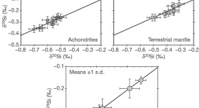 The silicon isotopic compositions of basaltic rocks from the Earth and Moon are distinctly 'heavy'. The similar isotopic composition of the bulk silicate Earth and the Moon are consistent with large-scale isotopic equilibration during the 'giant impact', indicating that Si was already a light element in the Earth's core before the Moon formed.