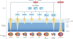 The cold-adapted communities on the seafloor around Antarctica are vulnerable to environmental changes. This Review summarizes the regional variations in present and future benthic ecological changes driven by the impacts of climate change and acidification.