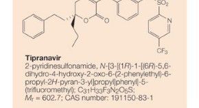 Tipranavir (Aptivus; Boehringer Ingelheim) was given accelerated approval by the FDA for the treatment of HIV-1 infection in combination with other antiretroviral agents in June 2005. It is the first in a new class of non-peptidic HIV-1 protease inhibitors, and is active against HIV-1 strains that are resistant to other protease inhibitors.